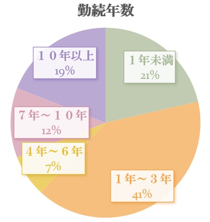 そのため、勤続年数が1年未満・1~3年の割合が大きく増加しております。